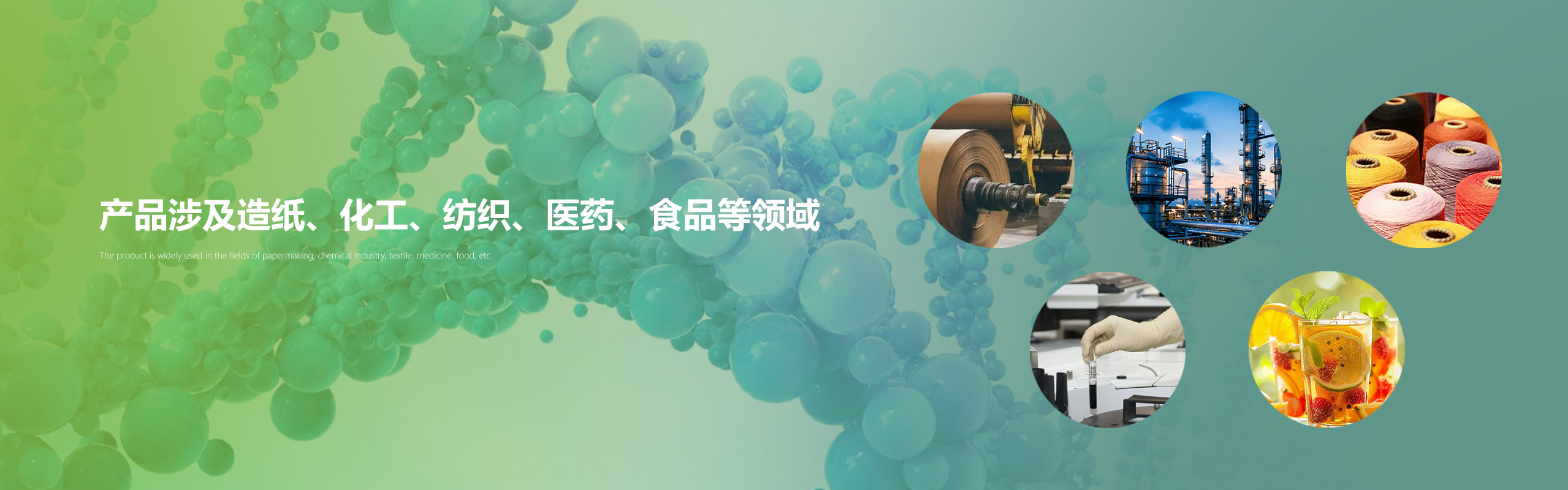结合一线技术人员的运用。可有效的保证公司每项产品具有强的稳定性、高的准确性和最具竞争力的性价比。公司目前可以提供的产品有:表面施胶剂、AKD、干强剂、增强剂、增效剂、流变剂、抗水剂、除臭剂、消泡剂、杀菌剂、阻垢剂、包裹剂、絮凝剂以及各种酶制剂等产品,范围涉及造纸、化工、纺织、医药、食品等各个领域。
